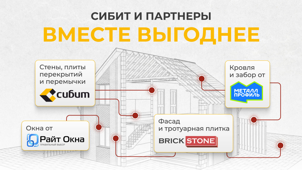 Покупайте стеновые блоки СИБИТ и получите эксклюзивный пакет скидок от наших партнеров. Ваш дом обретет законченный вид с материалами для фасада, кровли и окон с максимальной экономией.